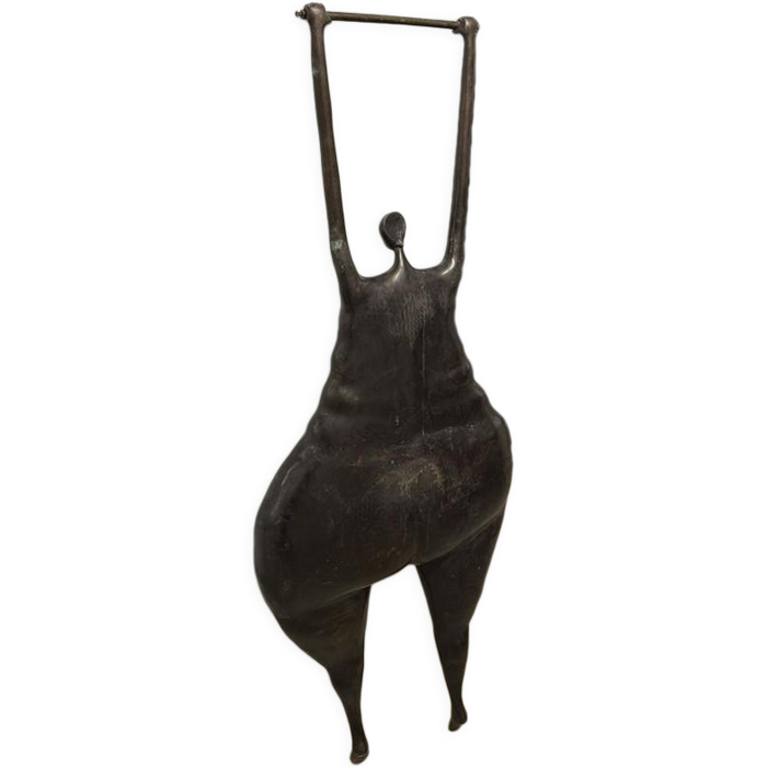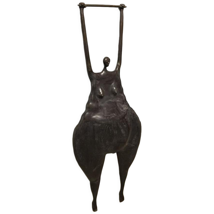 En las esculturas de poses menos convencionales es donde se acentúa la tendencia a la abstracción, ya que de por sí éstas se alejan de los modelos figurativos conocidos. Este es el caso de “Caminadora viajera”, 1990, “Mujer con bola”, del mismo año, “Tótem sincrético”, 1993, “Mujer con bola II”, de 1997. Y, en última instancia, el proceso mismo de deformación del cuerpo, que nunca es agresivo a pesar de su radicalidad, y que hace que esas mujeres sólo son posibles en la escultura de Varela, deviene en un proceso de abstracción a medida que se aleja tanto del cuerpo femenino real como de las esculturas naturalistas. Este proceso, enfrentado a la introducción ocasional de detalles casi hiperrealistas (una maleta, un paquete) se refuerza entonces por contraste, aportando de paso un acento humorístico. Y el contraste puede llegar a ser una de las posibles lecturas de una obra mucho más compleja de lo que pudiera parecer a primera vista gracias a sus aspectos risueños, sensuales y hedonistas.