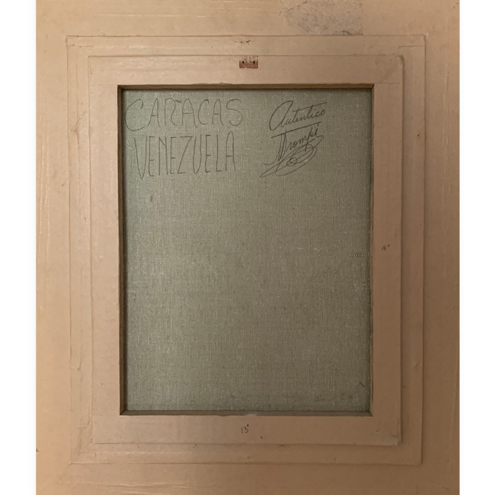 En 1948 figura entre los miembros fundadores del taller libre de Arte; en este mismo año se incorpora como ilustrador de la revista Tricolor donde permanecerá hasta 1970. En 1954 viaja a Italia, Francia y se radica por algunos meses en España. A partir de 1959 y hasta 1972 se desempeña como profesor de grabado y de pintura en la Escuela de Artes Plásticas y Aplicadas ‘Cristobal Rojas’. En 1966 realiza ilustraciones para la obra ‘Caracas 400 años’ que aparece al año siguiente compilada para el círculo musical en 20 álbumes para uno de los cuales pintó Trómpiz su cuadro ‘Velada Musical Durante la Colonia’. En 1979 la Corporación Venezolana de Guayana conjuntamente con la Galería Durban edita el libro “Trómpiz “….como alumno de la Escuela de Artes Plásticas reflejó inicialmente la influencia del cubismo de Braque y Picasso. A diferencia de sus compañeros de generación (Manaure, Navarro, Guevara Moreno, etc), no transitó el camino del abstraccionismo y aunque no despreció el color plano sintió, como Poleo en los últimos tiempos, predilección por la figura femenina ambientada sobre fondos decorativos donde juegan el armonioso colorido de una escenografía tropical formada por telas, cortinas y alfombras. En los últimos años Trompis empleó un colorido más sensual y sugerente, marcando fuertes contrastes con el claroscuro y aproximándose a la luminosidad de la materia de Armando Reverón, pero con gran cuidado de limitar su repertorio temático a las figuras femeninas”.